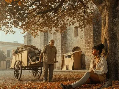 El silencio de la rotonda fue interrumpido por un sonido de arrastre metálico que se acercaba desde la calle Sánchez. Era una enorme carretilla, conducida por un anciano que parecía ser el motor que la impulsaba sin mucho esfuerzo. Al llegar frente a la joven mendicante, el anciano se detuvo y la observó en silencio mientras ella desviaba la mirada hacia un punto indefinido.